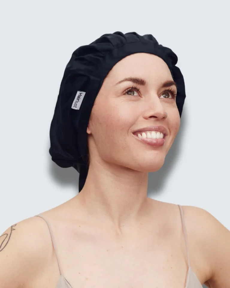 Bambuinen yömyssy on helppo valinta, kun halutaan vähentää kitkaa, säilyttää kiharat pehmeinä ja pitää päänahka mukavan viileänä läpi yön. Hairlustin Bamboo Hair Bonnet -myssy on valmistettu 100% Bamboo Lyocell® -kankaasta (600TC), joka tuntuu silkinsileältä, mutta on kevyempi ja hengittävämpi kuin moni perinteinen vaihtoehto. Tuote on OEKO-TEX®-sertifioitu, vegaaninen ja suunniteltu kaikille hiustyypeille – erityisesti kiharoille. Bambu on yömyssyn materiaalina pehmeä, hengittävä ja miellyttävä vaihtoehto, joka tuntuu iholla viileältä myös lämpiminä öinä. Bambuviskoosin ja bambu-lyocellin sileä pinta vähentää kitkaa puuvillaan verrattuna, joten kihara säilyy rauhallisempana ja aamu alkaa vähemmällä pörröllä. Materiaali siirtää kosteutta tehokkaasti pois iholta, mikä auttaa, jos hiuspohja hikoilee herkästi tai lämpö nousee nukkuessa. Pehmeyden ansiosta reuna tuntuu lempeältä ihoa vasten, eikä otsalle jää painaumia yhtä helposti.